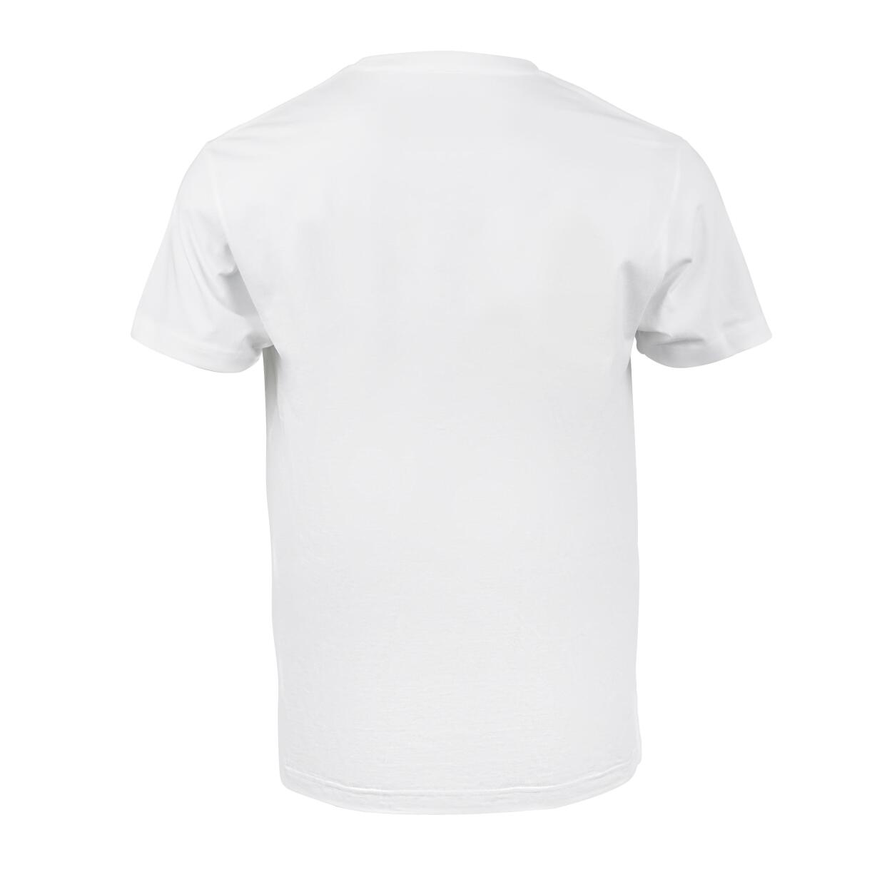 Tricoul alb are un aspect clar, cu logo-ul emblematic Ford în albastru, care ocupă un loc central pe față.