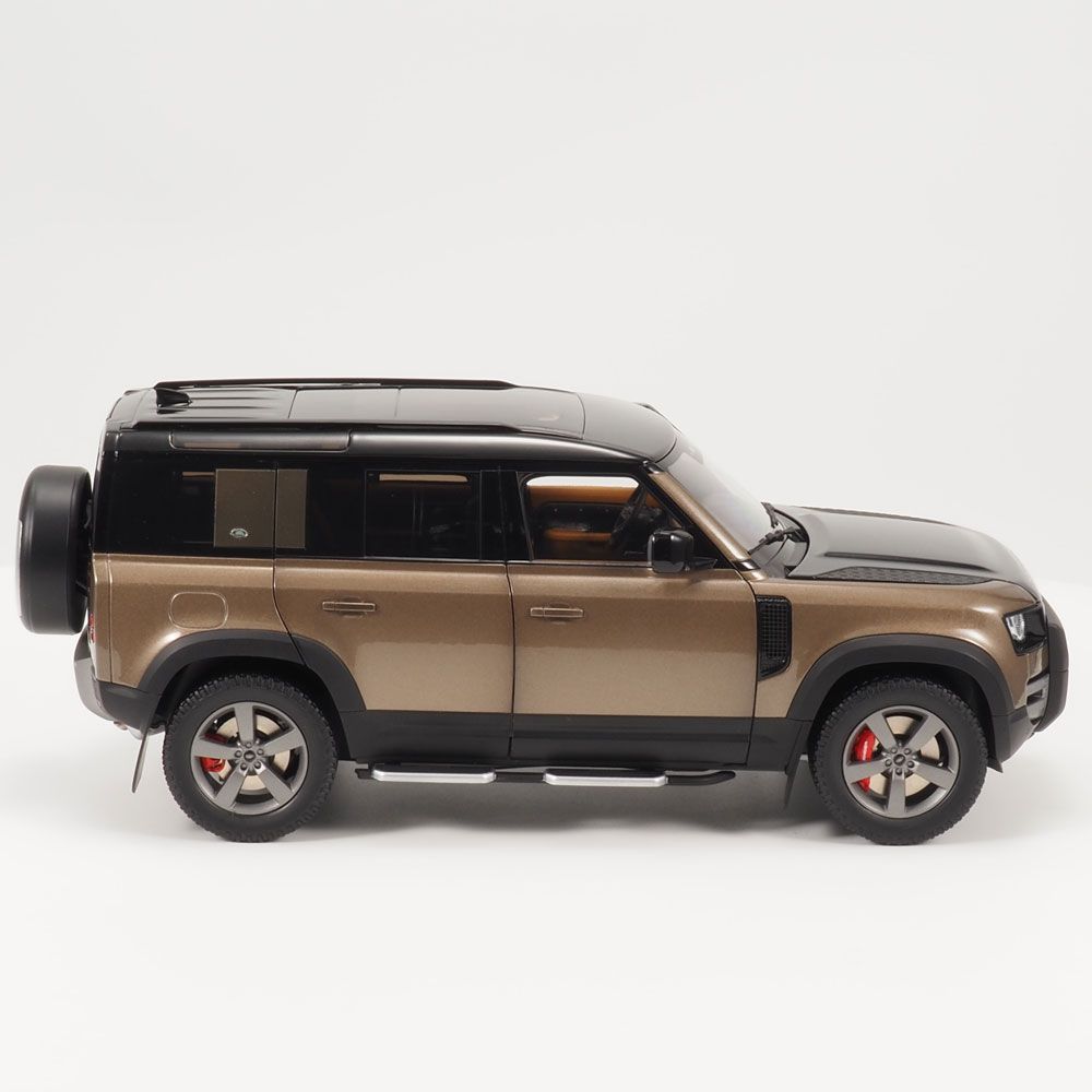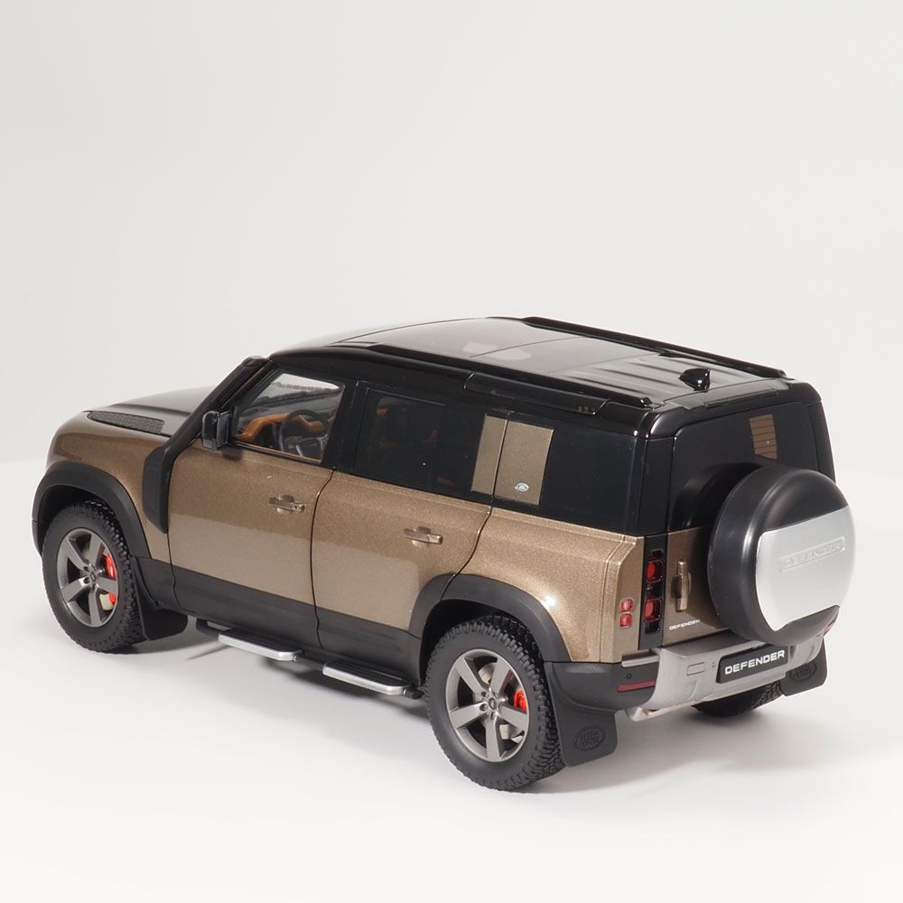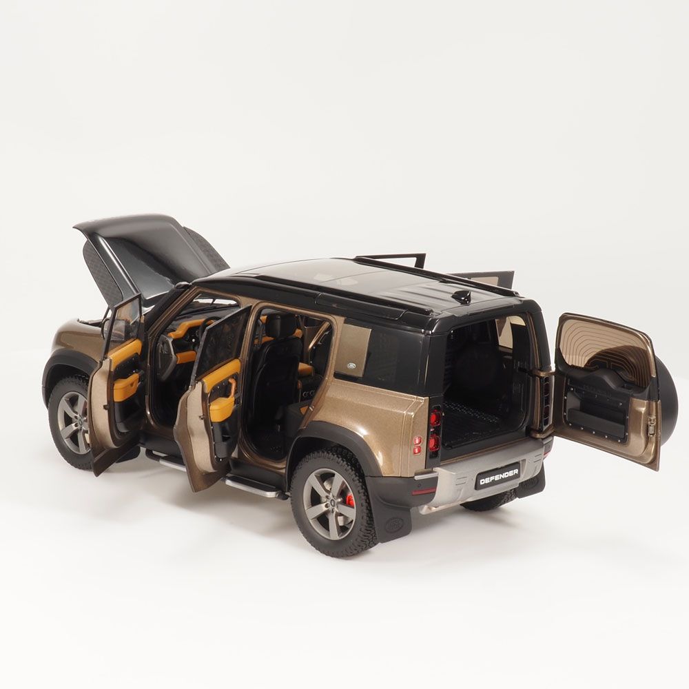 Replică de colecție a noului Land Rover Defender 110 în Piatra Gondwana. Redat în detalii extrem de realiste, fiecare model are un acoperiș contrastant și aliaje cu 5 spițe cu etriere de frână roșii, precum și uși, portbagajul și capota care se deschid.