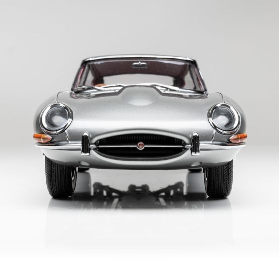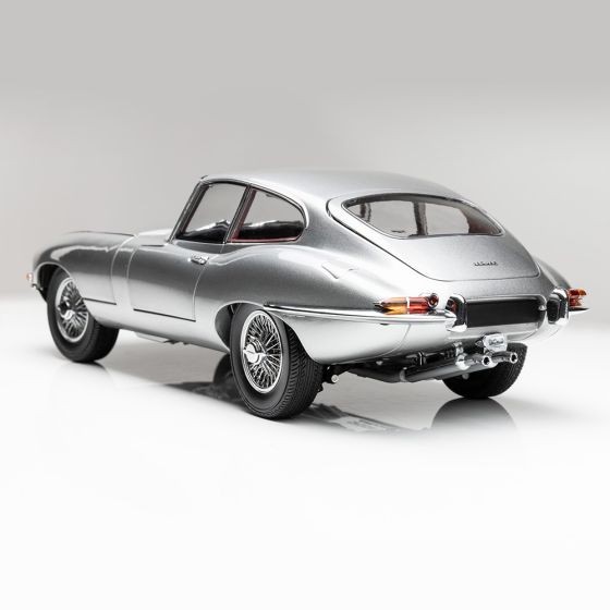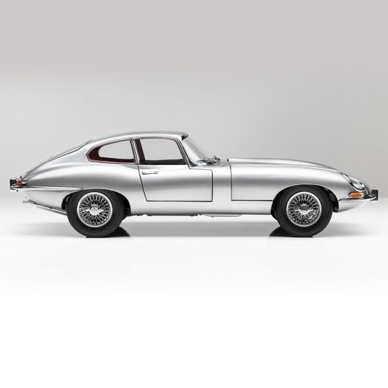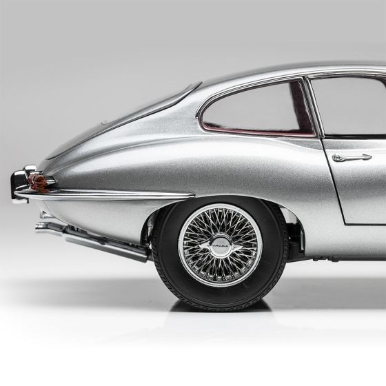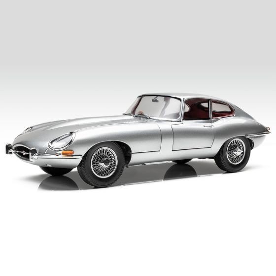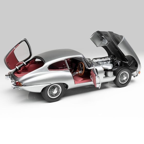 Cu vopsea metalizată argintie premium și interior roșu. Uși și capotă complet deschise. scara 1:18.