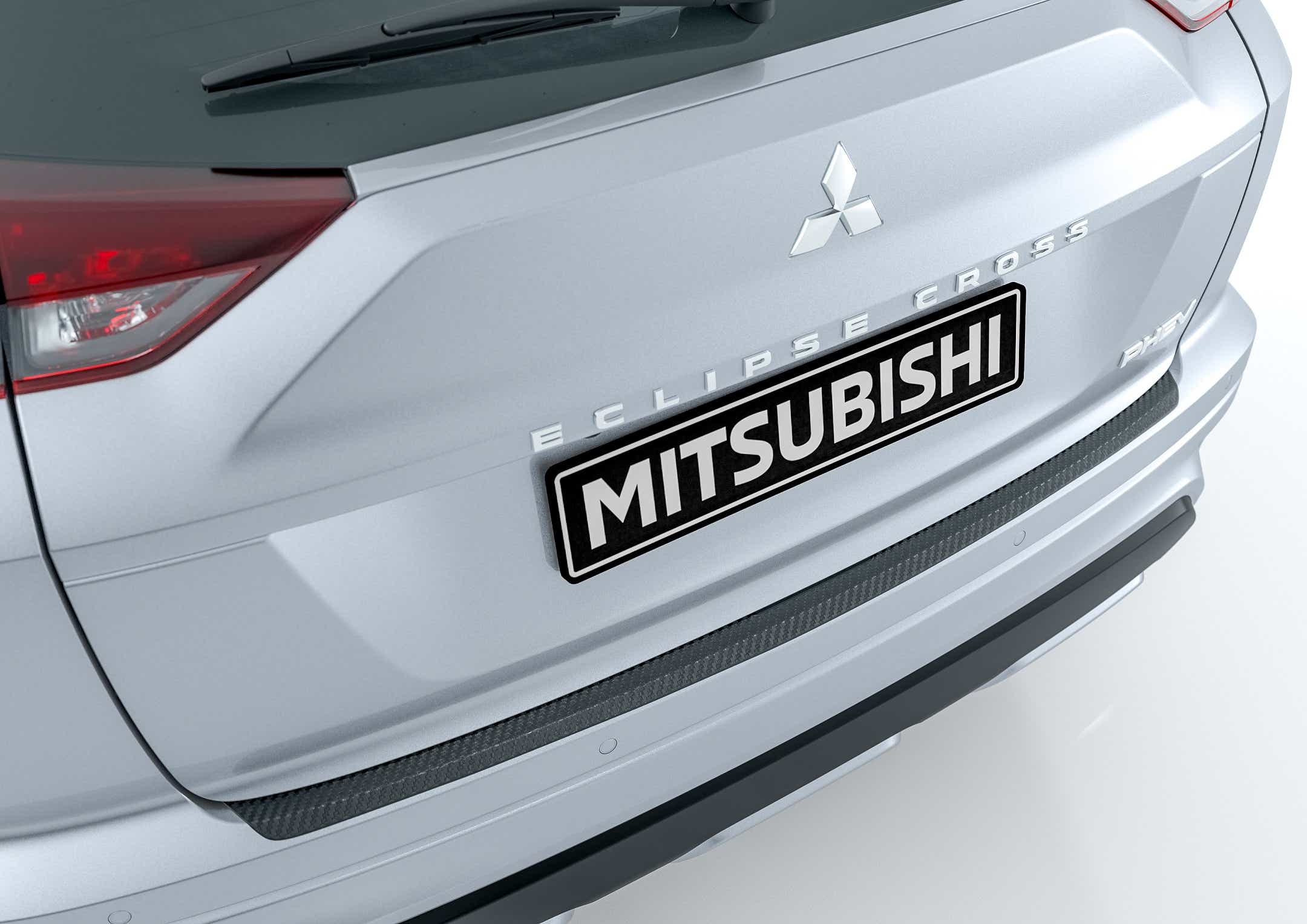Protectie bara spate cu aspect carbon si logo Mitsubishi Motors.